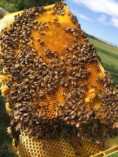 One of the most important roles that honey bees play is as pollinators. As they gather nectar and pollen from flowers, they transfer pollen from one flower to another, allowing plants to reproduce. This process is essential for the growth of many crops, and here on the farm, helps pollinate our vegetable and flower gardens!